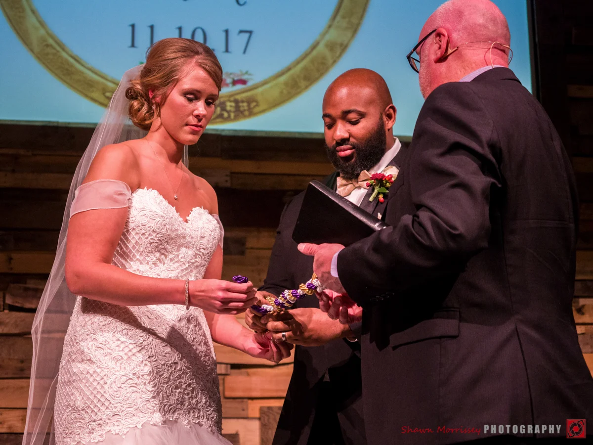The rest of the day was more of the same: laughter, excitement, anticipation...and so much positive energy! As the ceremony began, Crystal and David were all smiles. As they exchanged vows, rings, and literally "tied the knot"...they were pronounced husband and wife and shared their first kiss as a newlywed couple. And after my very first "broom jumping" we all headed downtown while all the guests headed to the reception.